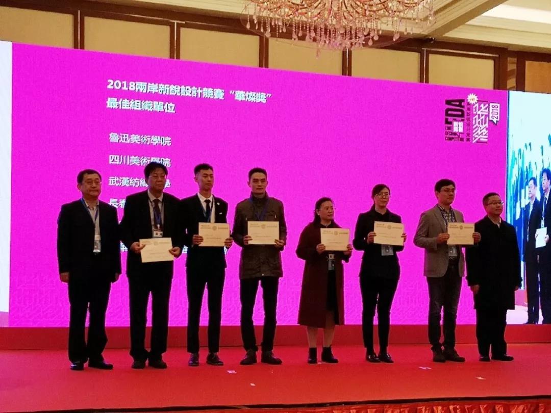 在頒獎(jiǎng)儀式上,航天通信敖剛董事長(zhǎng)上臺(tái)為2018年兩岸新銳設(shè)計(jì)競(jìng)賽“華燦獎(jiǎng)”最佳組織單位頒獎(jiǎng)。